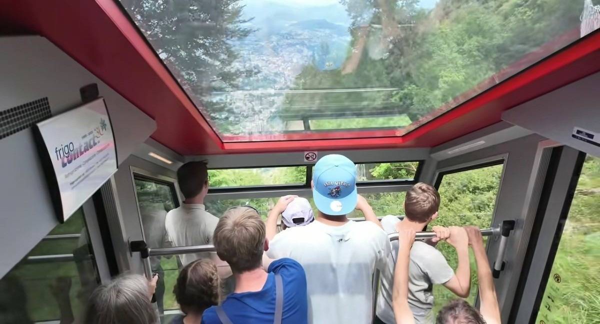 张子萱身材纤瘦,体力比陈赫好的多,但考虑到陈赫,最后还是一起坐缆车上山。